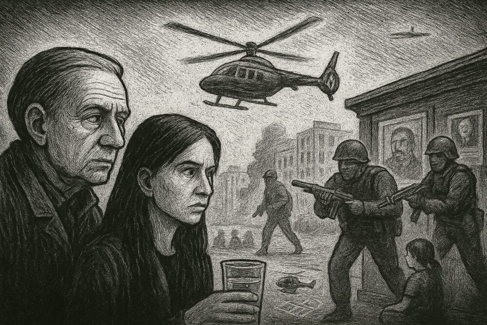 Ms. Özgül remains silent, fills two glasses with water. She slides one across the table. “Imagine this glass is Chicago. Every sparkle in it — an abduction. Every bubble — tear gas.” She taps the glass. “They say it’s about law. But law is when a judge calls the violence shocking to the conscience — and it still goes on.”